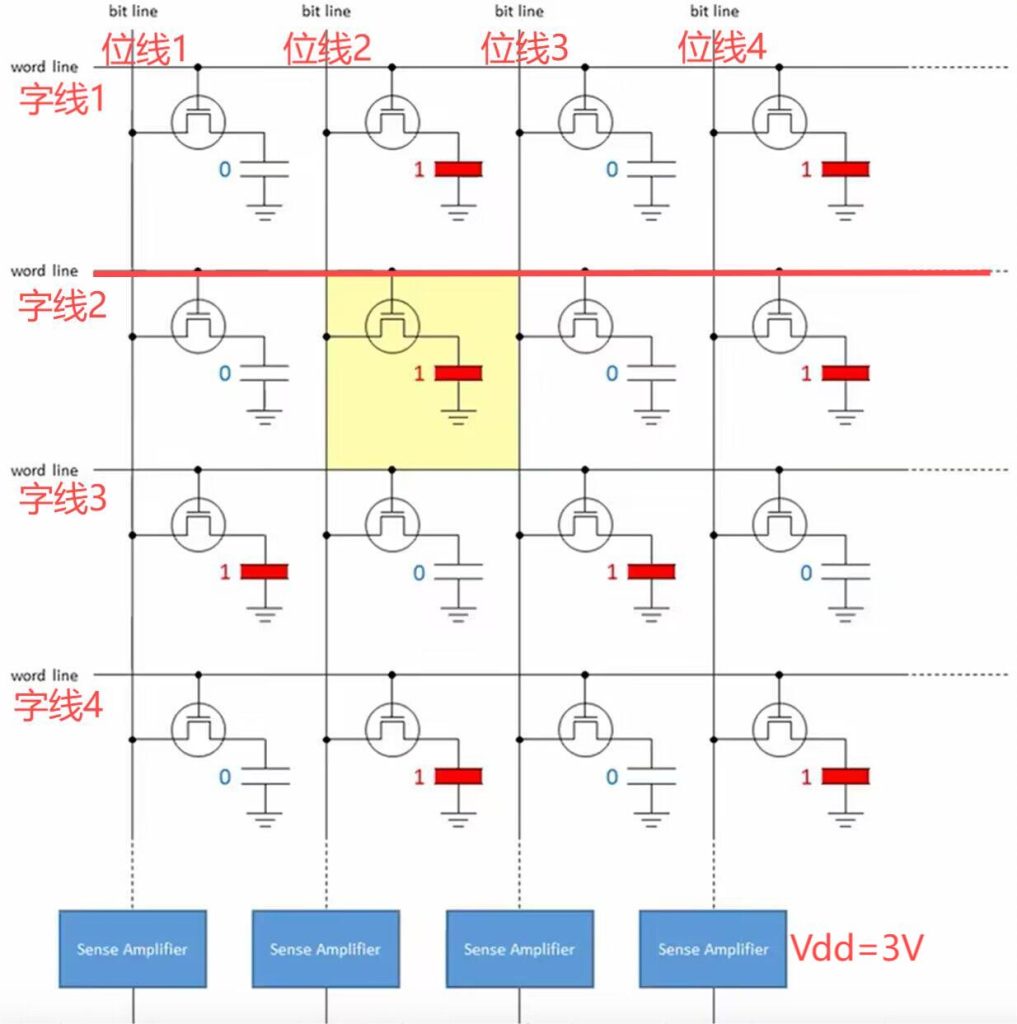 由于三极管漏电,因此平均几十ns就要刷新一次(DRAM动态随机存储器)